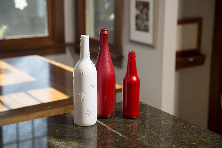- Use painter’s tape to tape off the top section of each vase, leaving half of the vase exposed.