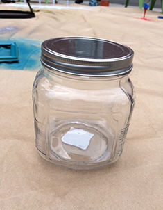 - Once taped, spray chalkboard spray from 20-30cm from jar moving from one side to the other.