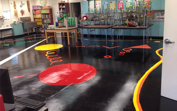 - Lay out a design on the floor. If using different colours of paint (like the theme shown above), this will help with planning the desired colour pattern. Snap a picture of the layout as a reminder.